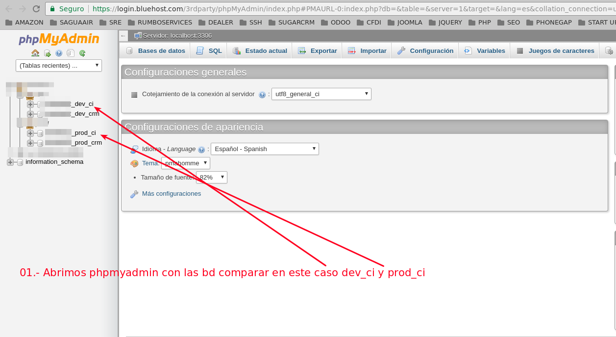 01.- Abrimos phpmyadmin con las bd comparar en este caso dev_ci y prod_ci