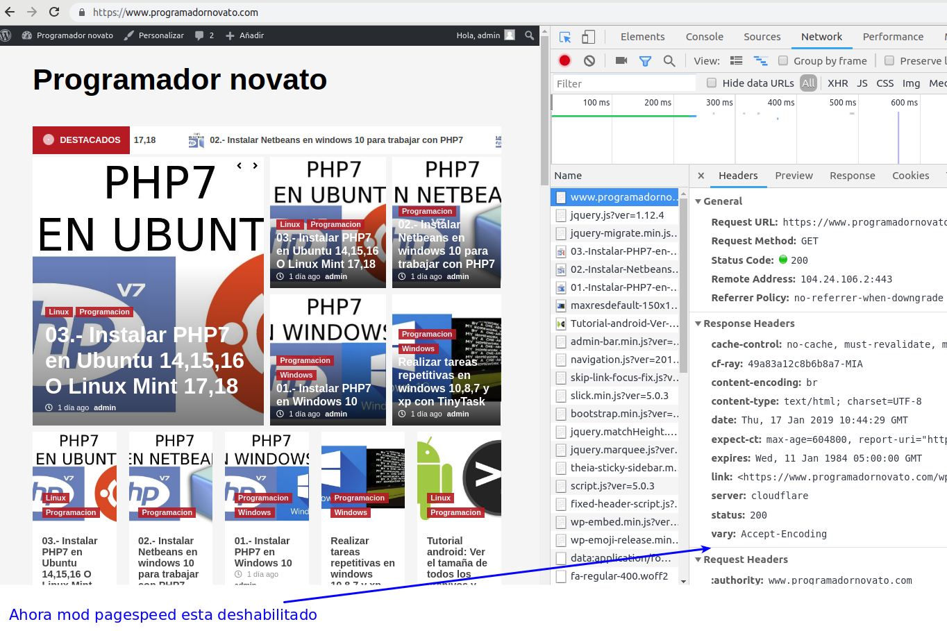 Ahora podemos ir a comprobar que mod_page speed esta des habilitado en nuestro sitio: