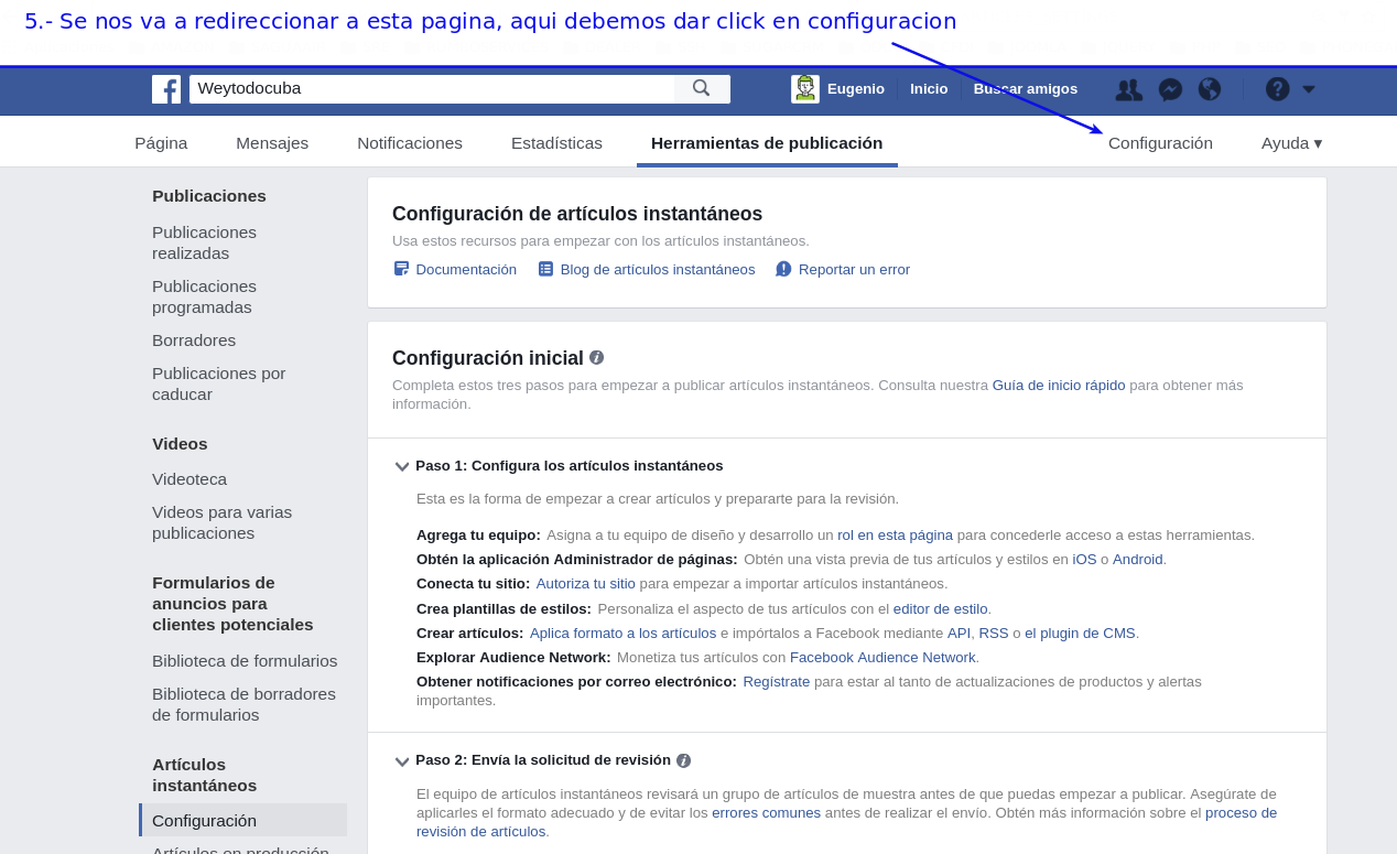 Crear pagina de fb con instant articles