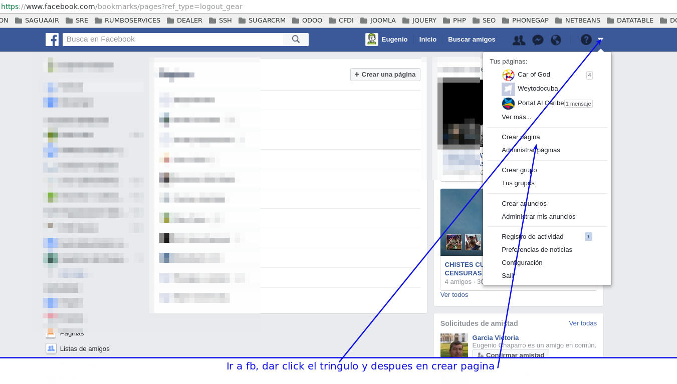 1.- Ir a fb, dar click el tringulo y despues en crear pagina