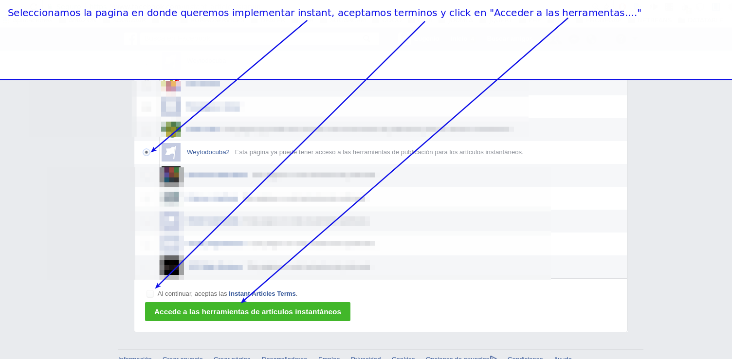 4.- Seleccionamos la pagina en donde queremos implementar instant, aceptamos terminos y click en “Acceder a las herramentas….”.