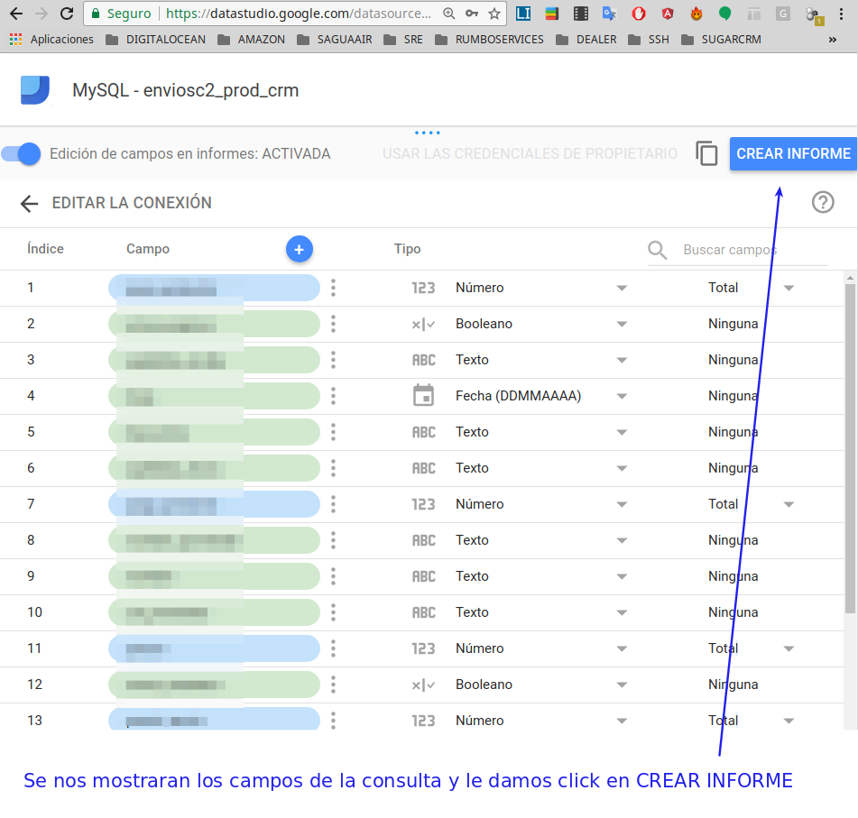 5.- Se nos mostraran los campos de la consulta y le damos click en CREAR INFORME