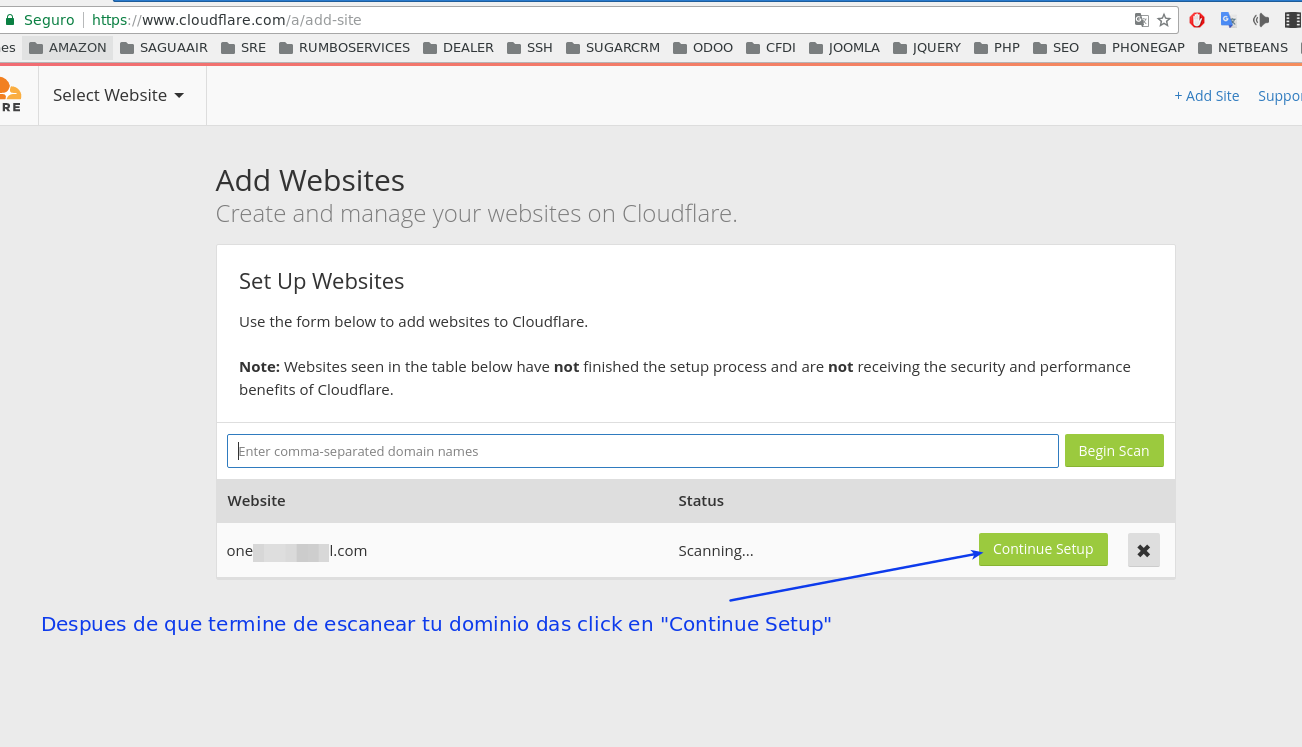 Después de que termine de escanear tu dominio das click en “Continue Setup”