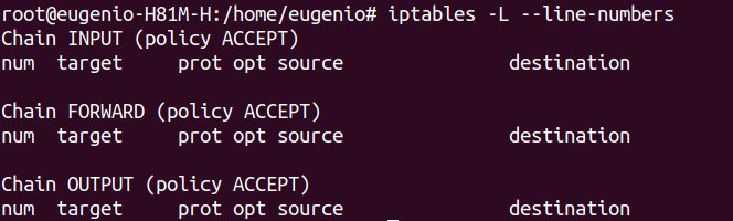 Chain OUTPUT (policy ACCEPT)  = Las politicas Salida
