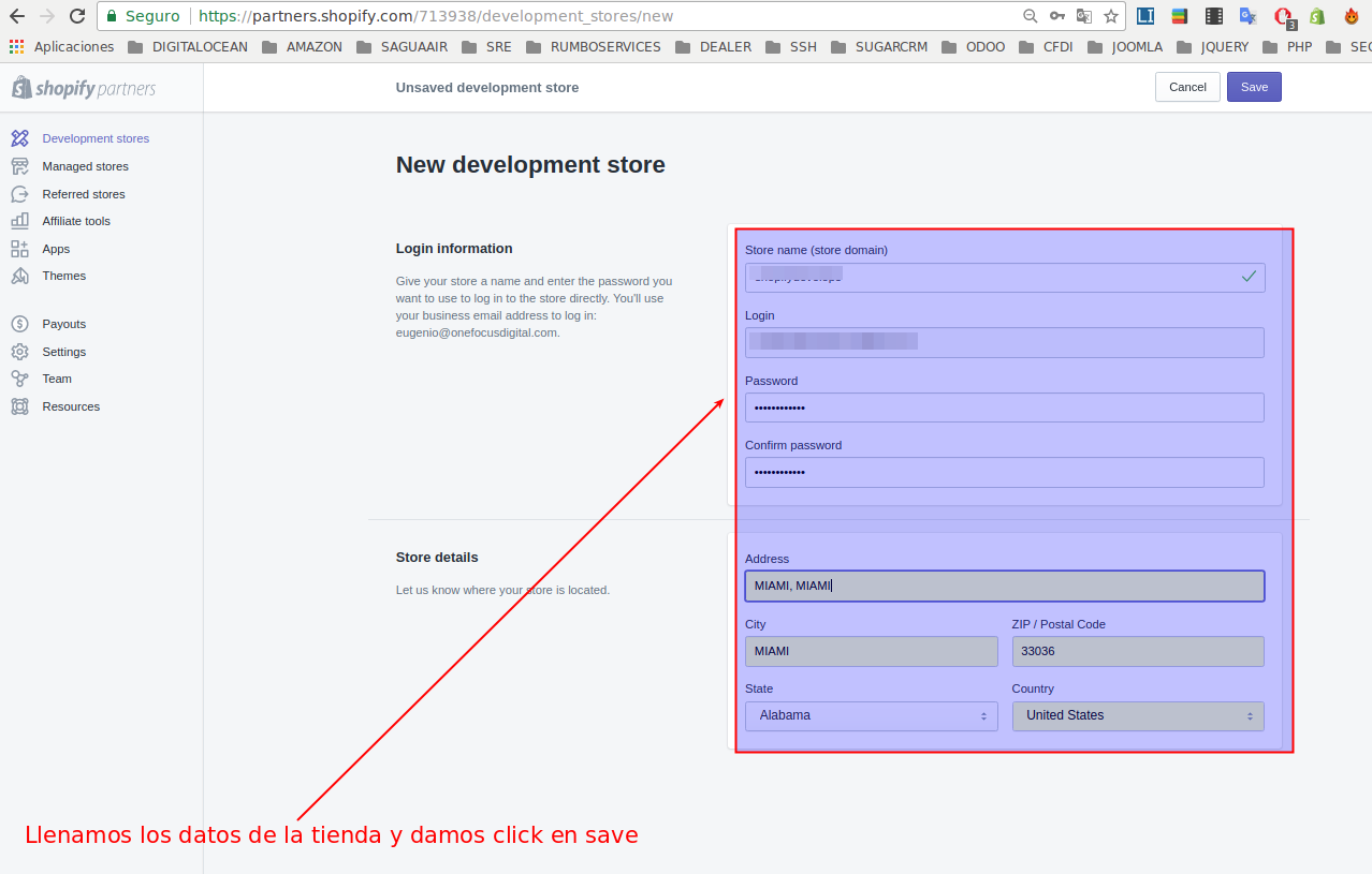Vamos a dashboard de shopify partners >> Developers stores y crear una nueva store