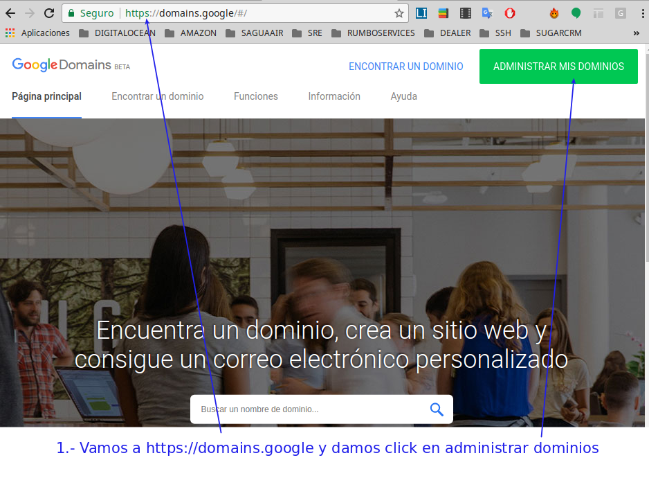 1.- Vamos a https://domains.google y damos click en administrar dominios